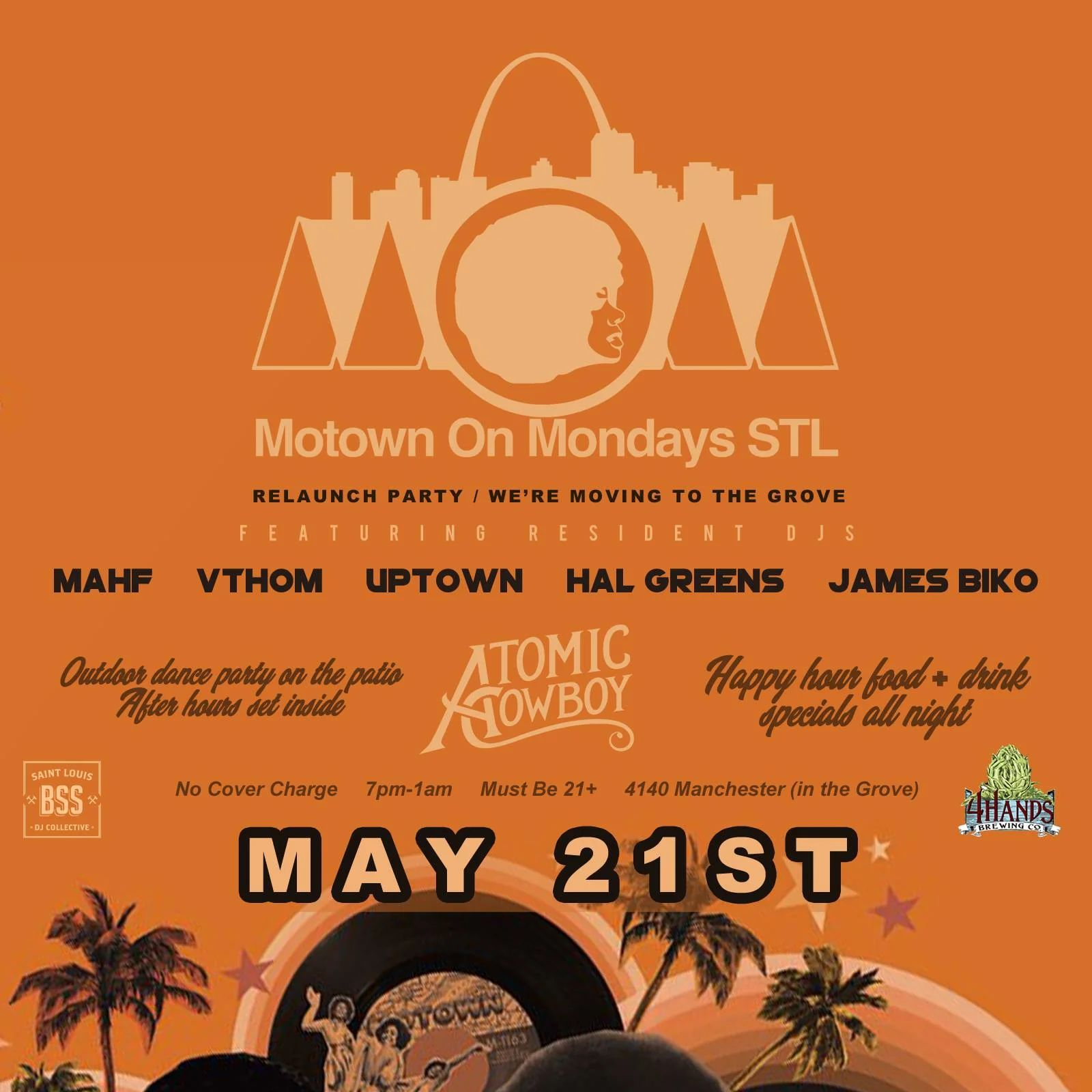 Motown On Mondays STL is moving to the Grove! Grab some friends and join us Monday 5/21 for our official relaunch party at Atomic Cowboy!