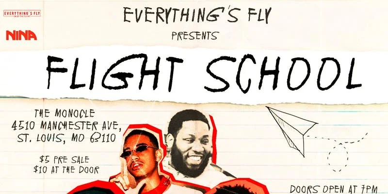 Everything's Fly presents Flight School, a night of local STL hip hop. Tickets are $5 in advance and $10 at the show. Doors at 7pm. Show at 8pm. 21 and up!