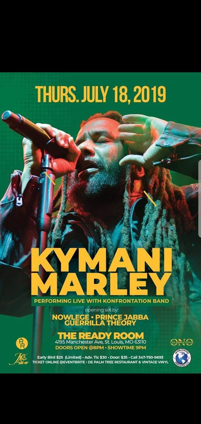 KyMani Marley son for musical icon Bob Marley will be gracing the Saint Louis Stage for the first time since 2015 playing hits such as “Dear Dad”, “Freedom” and “Warriors”. The Konfrontations will be along side Marley carrying you through this musical journey!