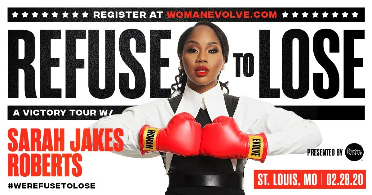 Woman Evolve presents The Refuse to Lose 2020 Tour, hosted by Sarah Jakes Roberts. Throughout the event, women will be inspired to step back into the ring and fight through the personal, emotional, and spiritual obstacles holding them back from evolving to their highest potential.