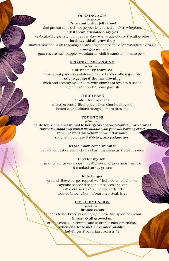 Indulge in a soulful journey of flavors curated by yours truly, Chef Terri Jayne while experiencing a harmonious blend of delectable dishes from appetizers to desserts, each course will be formally introduced, telling a story of culinary delish-ology.